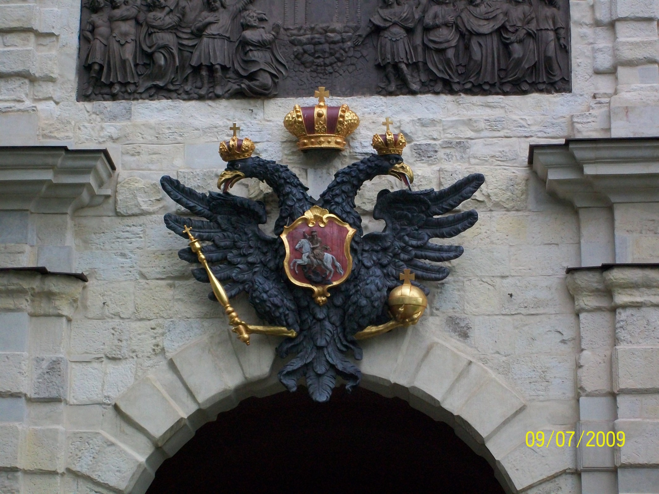 Скульптура герба над входом