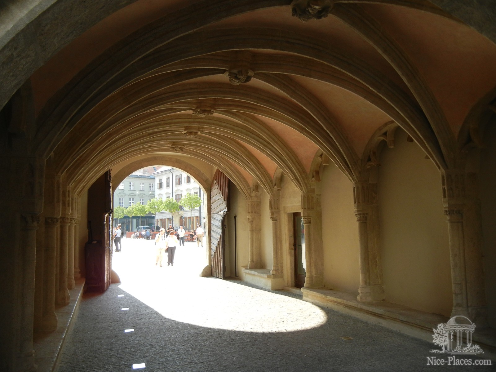 Галерея, вдали видна часовая башня ратуши